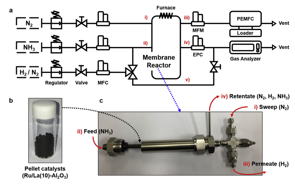 NH3가 촉매에서 열화학반응으로 수소로 변환 (NH3 conversion)하여 수소는 Pd/Ta 막으로 투과 (H2 permeability)한다.